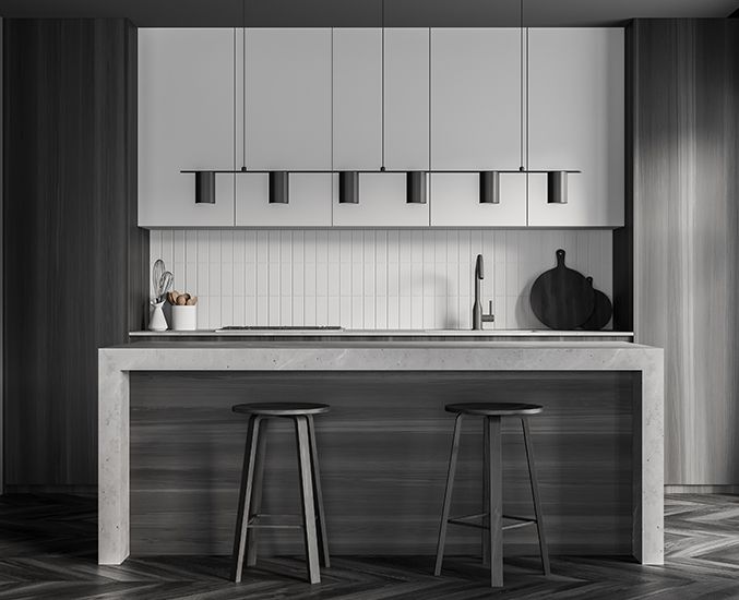 - Cabinetry, stone surfaces, and architectural finishes